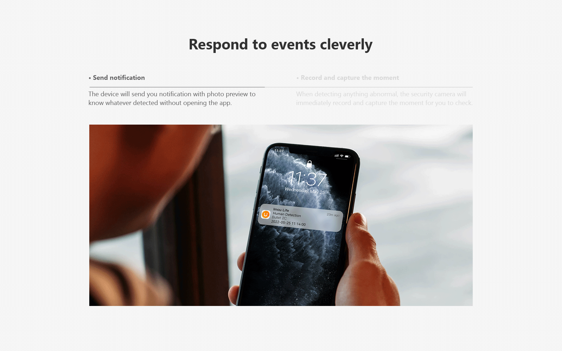 The device will send you notification with photo preview to know whatever detected without opening the app.